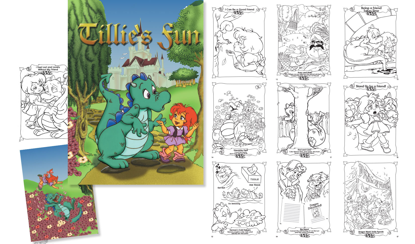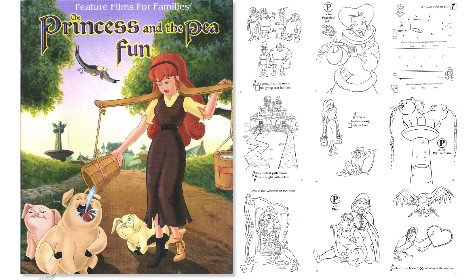 I've produced 15 of these coloring/activity books for Feature Films for Families. These were drawn and inked traditionally with pencil, brush and india ink.