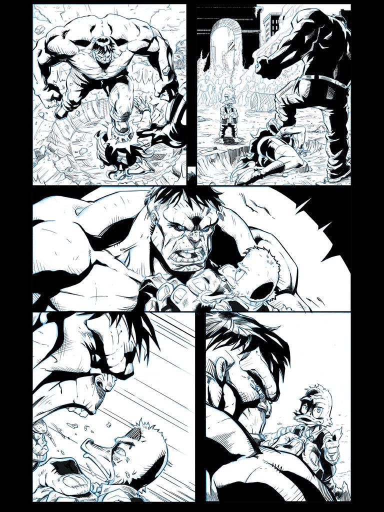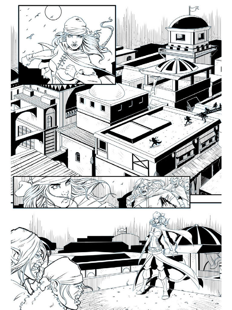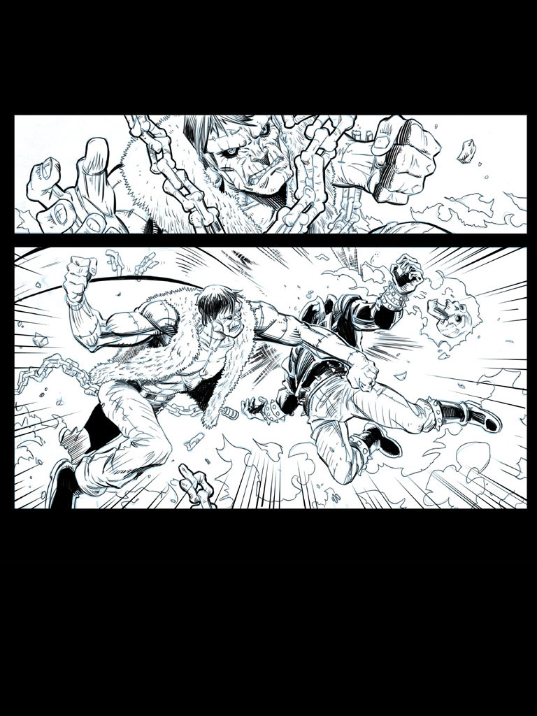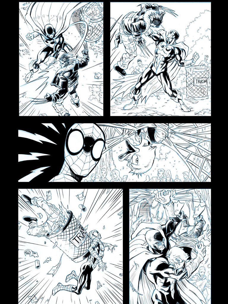 These are sample comic book inks I did to show at Comic-Con. I inked these in Photoshop, but now I use Manga Studio — which is lot better for creating comics in.