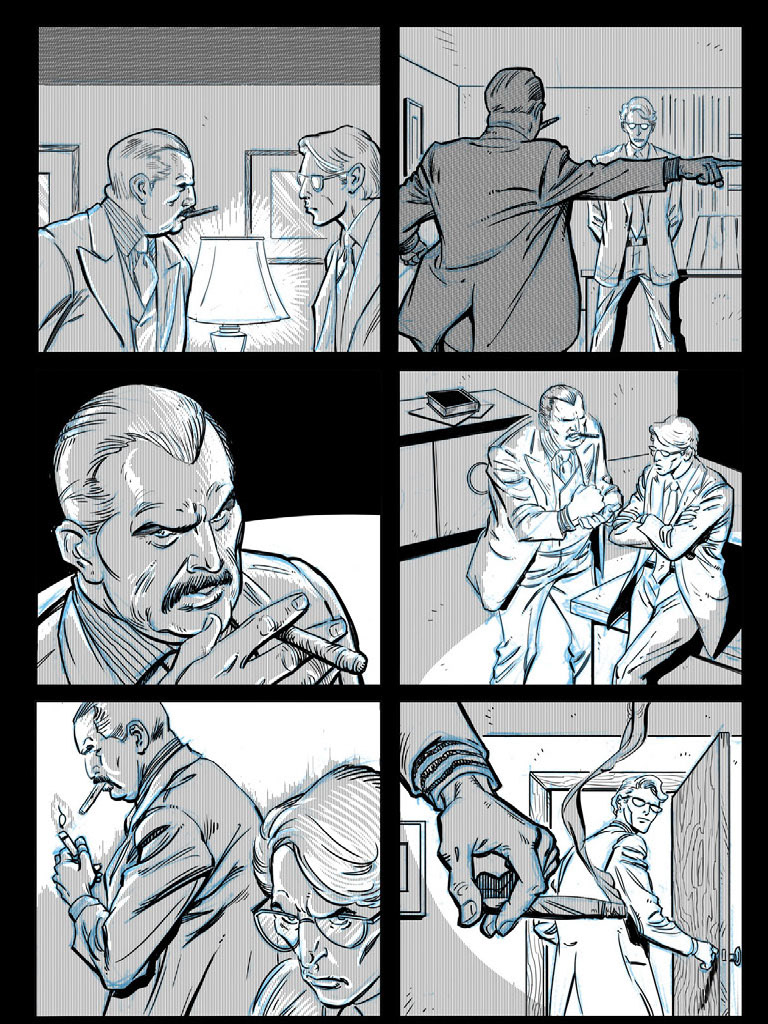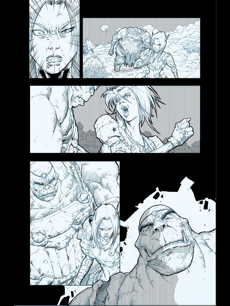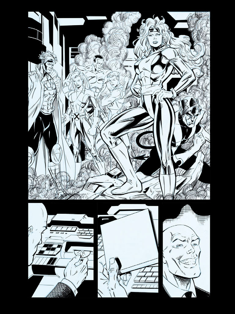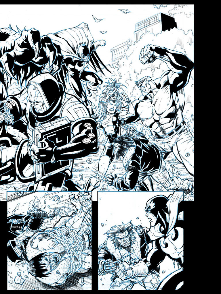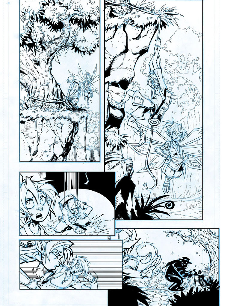 These are sample comic book inks I did to show at Comic-Con. I inked these in Photoshop, but now I use Manga Studio — which is lot better for creating comics in.