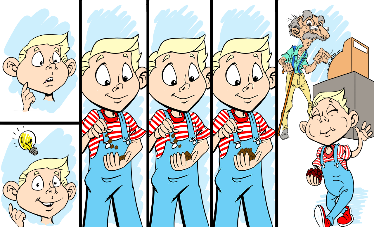 These are illustrations created for videos for deaf children, my cartoons were displayed behind an interpreter at key moments of the stories.