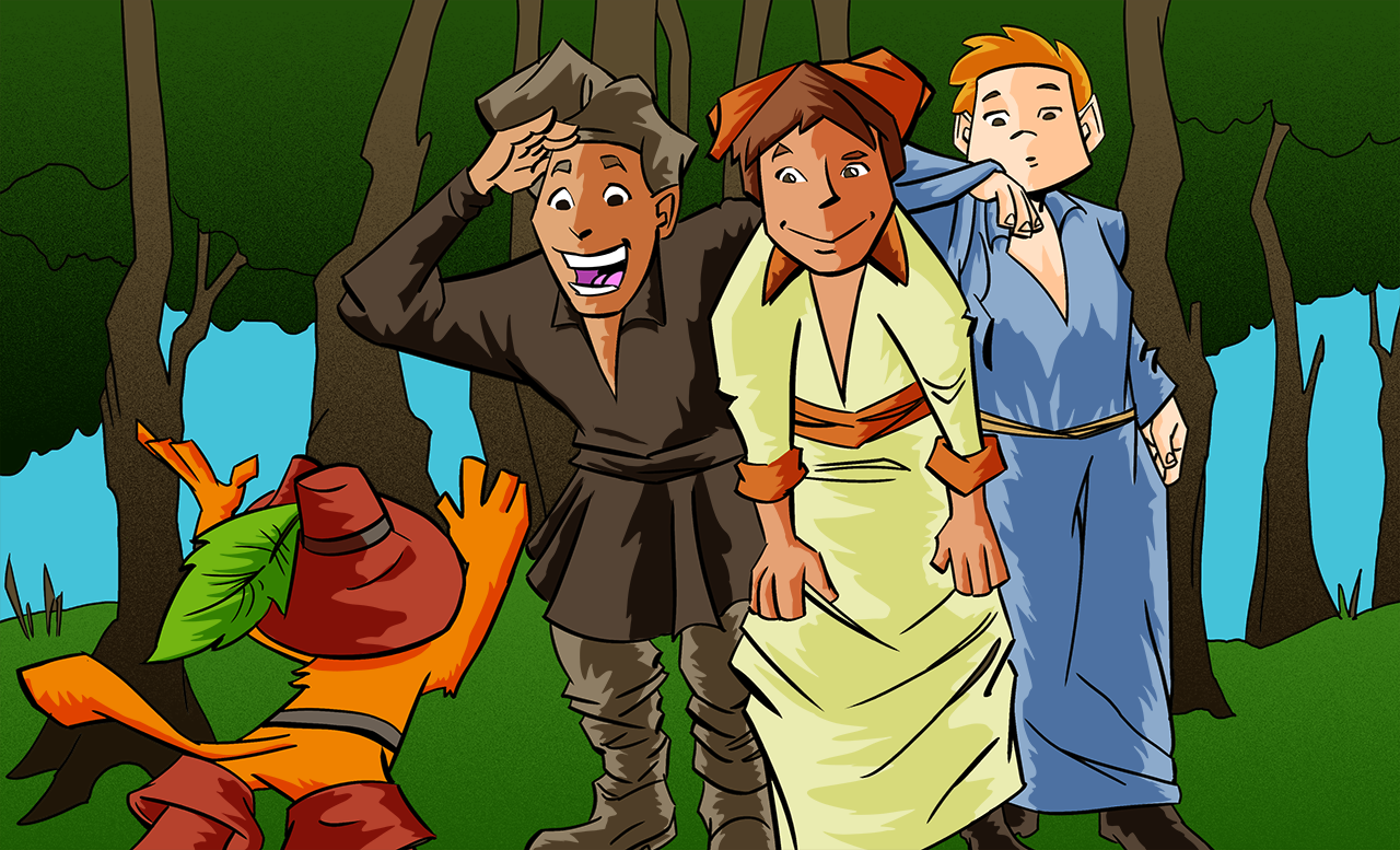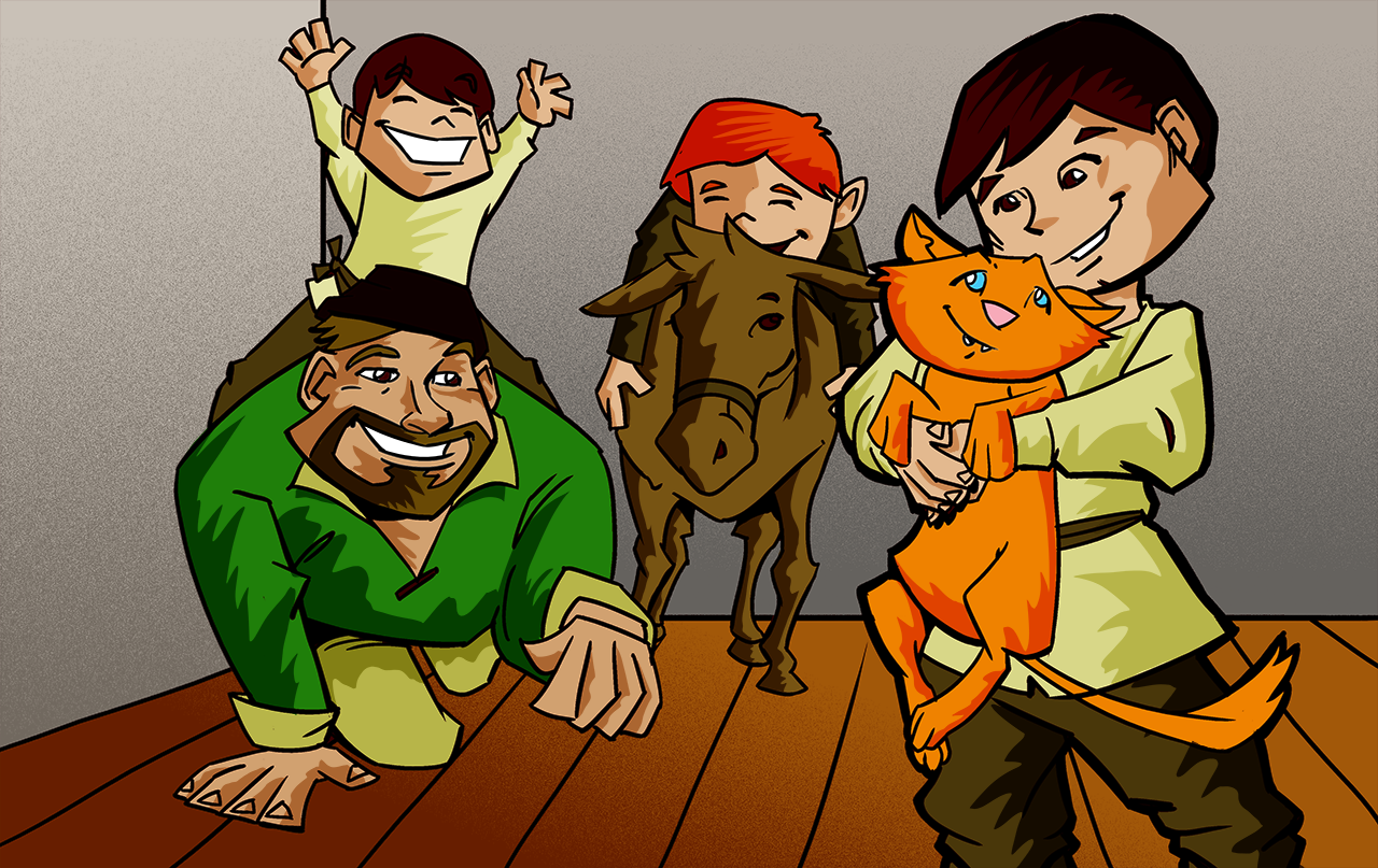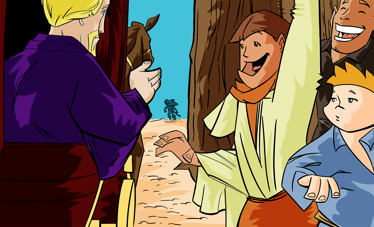 These are illustrations created for videos for deaf children, my cartoons were displayed behind an interpreter at key moments of the stories. Pencils by IJ Art, I provided the inks and digital colors.