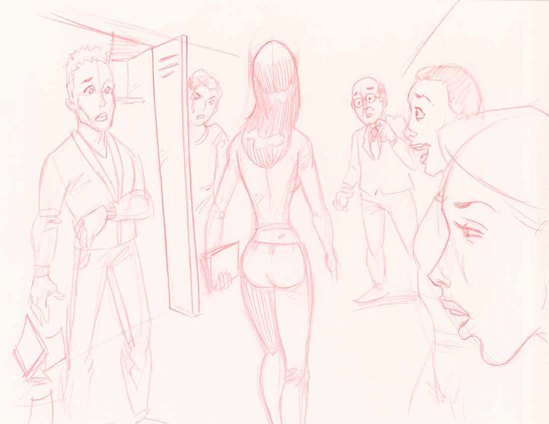 Storyboard key frame art drawings for a client.